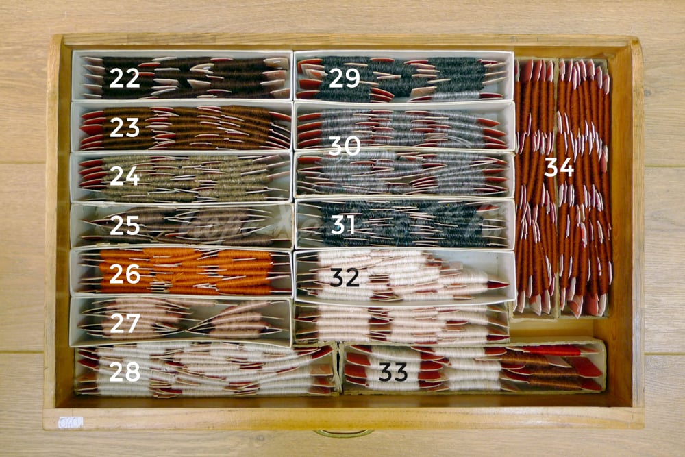 Cartuchos de 30 metros de fio para passajar meias ou outras peças de malha fina. Exclusivo Lopo Xavier.